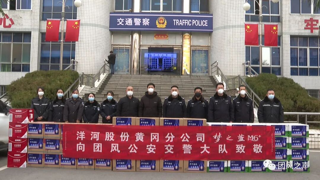 寒冬将至,洋河股份黄冈分公司向县公安局巡逻警察大队捐赠价值约2万元的大米、食用油、矿泉水等物资,提前向这些确保市民平安的公安干警致以崇高的敬意。