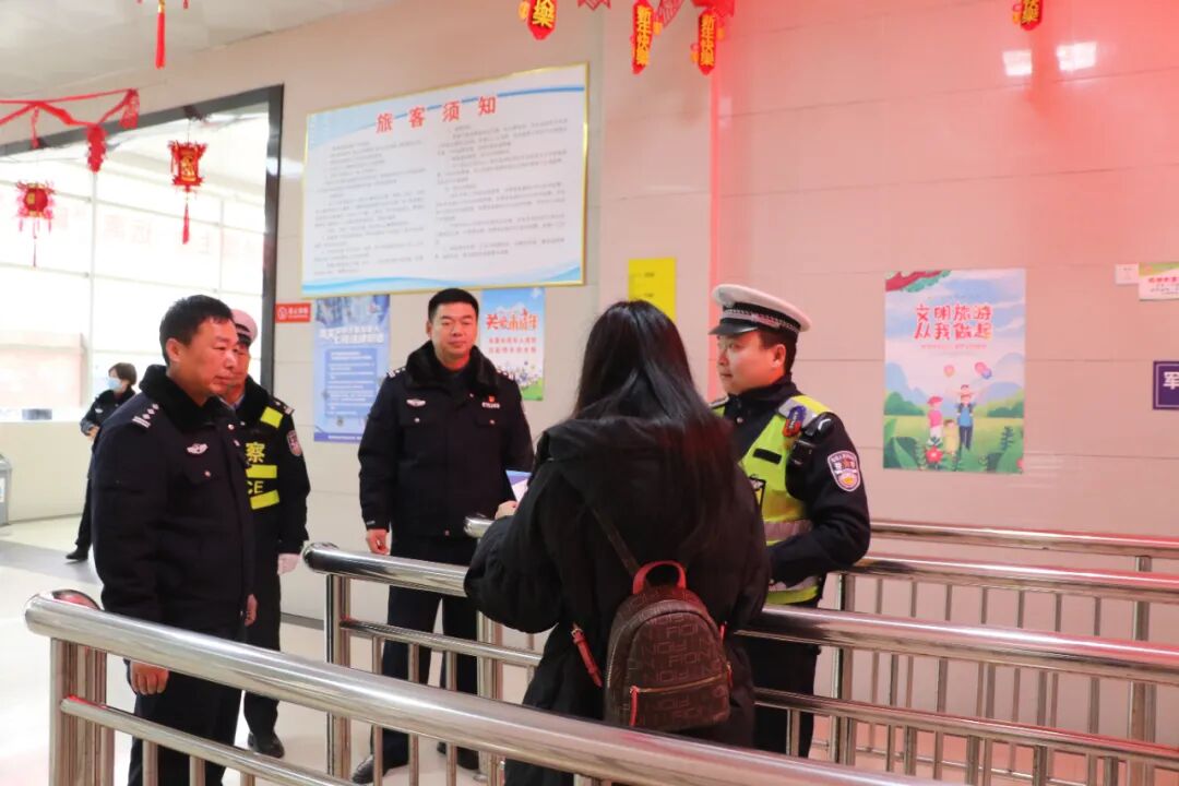 1月26日春运首日,团风县公安局率领民辅警走进团风客运站,正式开启了2024春运首日宣传活动,将“安全”送到群众手中。