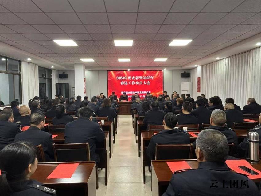 2025年1月14日,团风县交投公司负责人欧阳红同志主持召开2024年度表彰暨2025年春运动员大会,县交通运输局党组书记、局长刘丹,党组成员、副局长张碧鸿;县城投集团党委书记、董事长漆鹏,集团党委副书记、副董事长、总经理何佳元,集团党委成员、监事会主席易志武;县道路运输和物流事业发展中心主任许小朋及该公司全体干部职工参加会议。