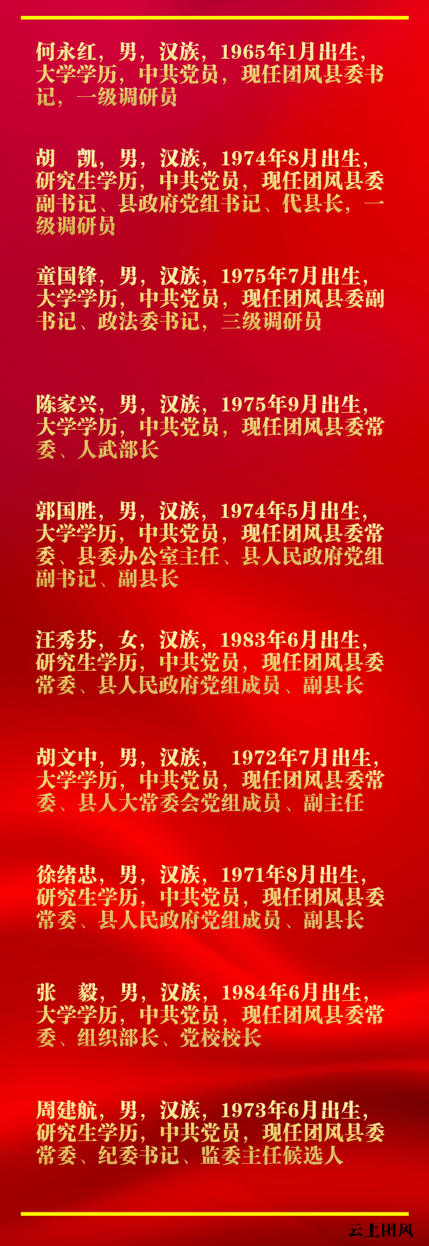 聚焦党代会 | 重磅!团风县新当选县委书记、副书记、常委名单
